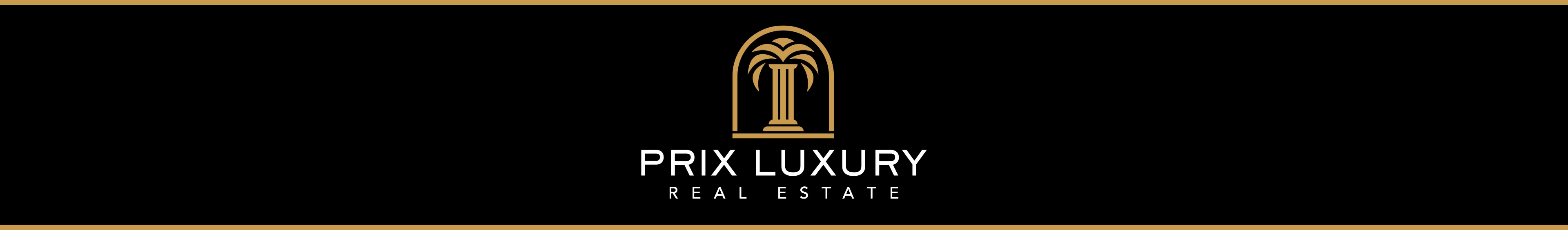 Banner von Prix Luxury Real Estate mit einem Logo, das Folgendes zeigt: