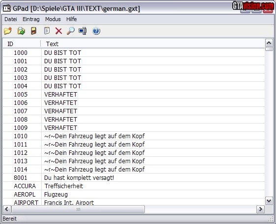 Description: Dieses Programm ermöglicht das Anpassen von GTA 3 Textdateien (GXT). Zusätzlich ist ein Programm für das automatische Backup dieser Dateien enthalten.