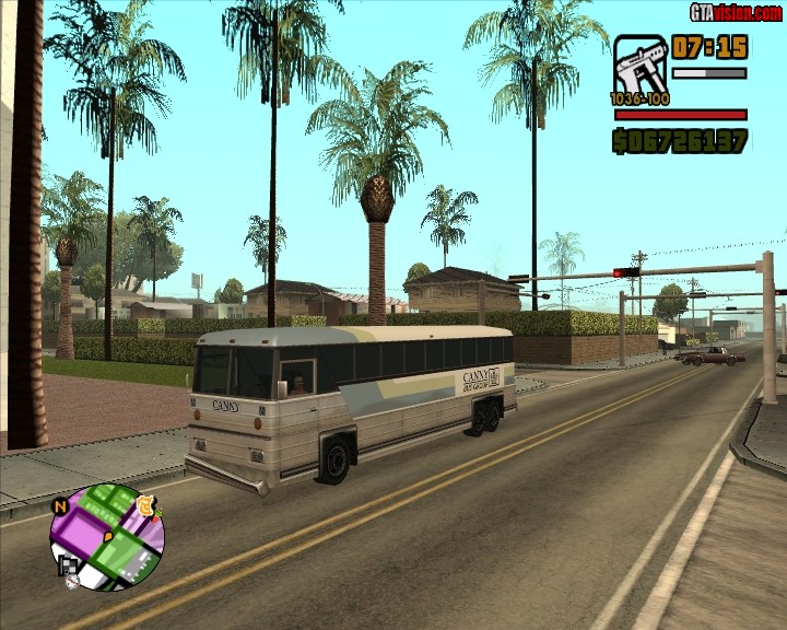 Bus. Haltestellen sind auf der Karte markiert.HAltestellen sind in LAs Venturas,Los Santos